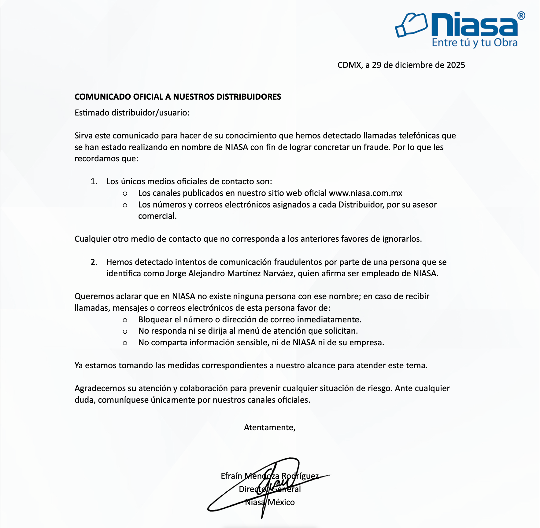 La venta de productos Niasa se realiza a través de una gran red de 500+ distribuidores en México.