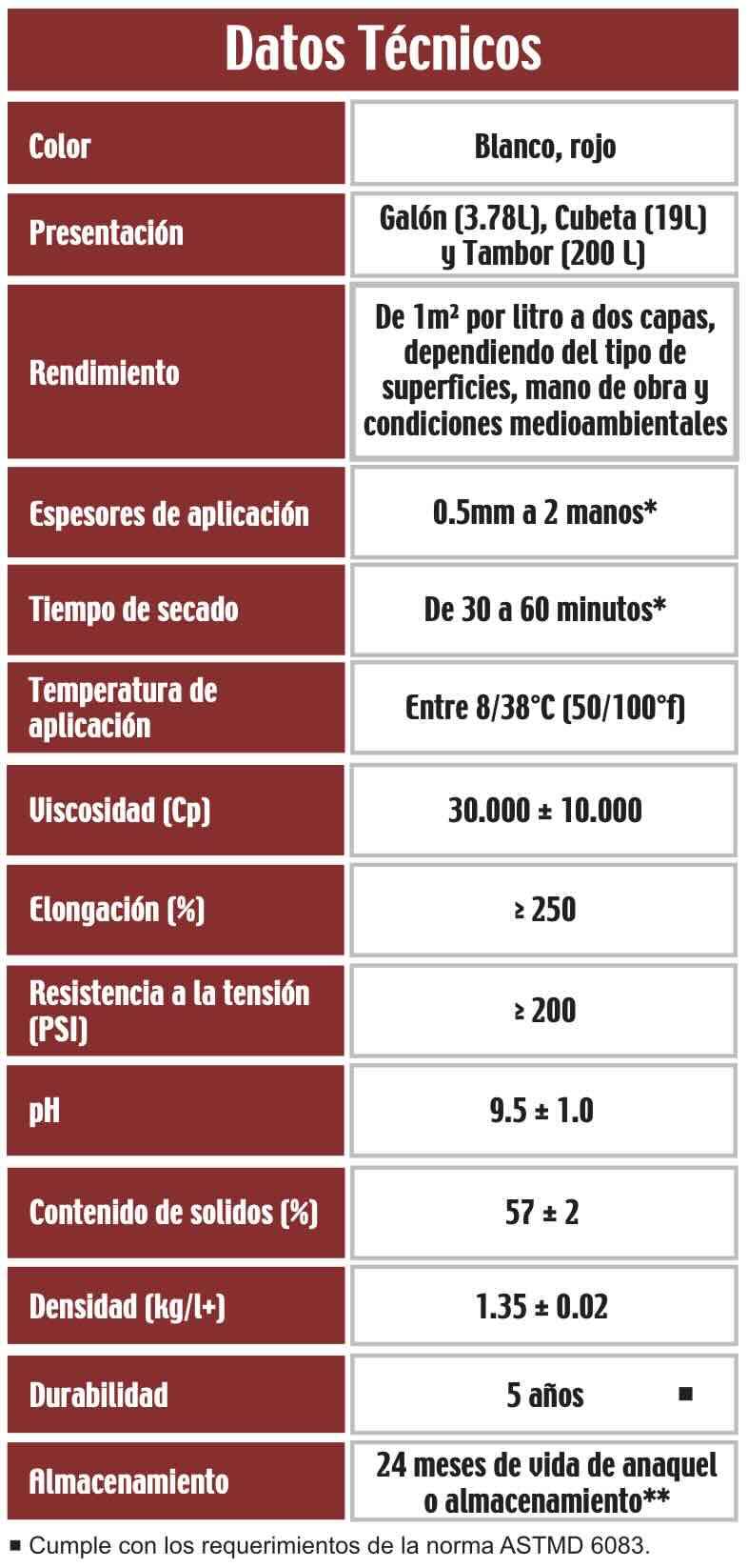 - Actúa como un recubrimiento impermeable de alto desempeño protegiendo techos de concreto, azoteas, domos, bóvedas, techumbres, muros, fachadas, lámina galvanizada, poliuretano espreado.